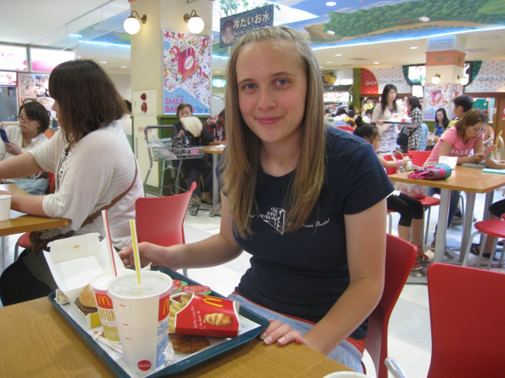 By the time we finished--Katie scored two pairs of soccer shorts and a cute summer sweater--we were hungry! So we headed to the mall.